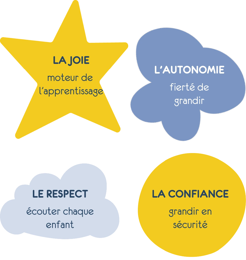 Dans les crèches Les Bébés Explorateurs, quatre valeurs guident l’accompagnement de votre enfant au quotidien. Ces piliers de notre projet pédagogique, portés par notre équipe, créent un environnement où chaque tout-petit peut s’épanouir à son rythme, en toute confiance.