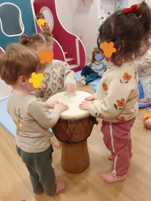Autour du tam-tam, les tout-petits de Vincennes vibrent, frappent et écoutent ensemble. Cet atelier musical collectif développe la perception auditive, le sens du rythme et le plaisir de jouer à plusieurs.