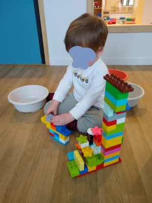 Assembler, empiler, équilibrer les briques colorées: ces jeux de construction stimulent la pensée logique, la patience et la créativité des bébés de Vincennes, dans un espace dédié et sécurisé.