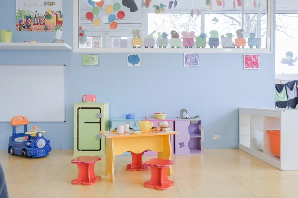 L'espace de jeux libres est richement doté en jouets de construction variés — blocs en bois, Lego soft, puzzles emboîtables — qui stimulent la créativité, la logique et la motricité fine des enfants. Les 157 m² intérieurs sont organisés pour alterner zones d'éveil actif et coins de repos, adaptés aux différents rythmes des enfants de 0 à 3 ans.