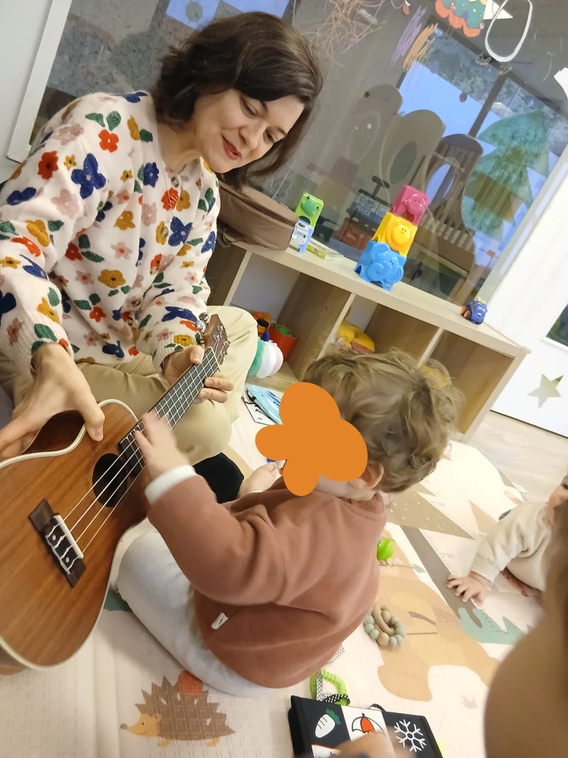 À la crèche du 17e, les enfants participent à des ateliers découverte de la guitare : écouter les sons, effleurer les cordes, ressentir les vibrations… une belle initiation musicale pour les petites oreilles curieuses.