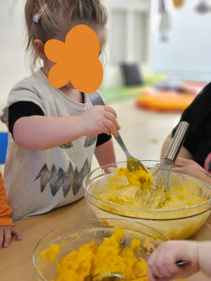Pour Halloween, les explorateurs de Victor Hugo préparent ensemble un cake au potimarron : mélanger, verser, observer la couleur… un atelier cuisine festif qui éveille les sens et développe le goût des tout-petits.