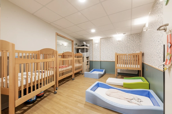 L'environnement de la structure est pensé pour soutenir la motricité libre : espaces au sol dégagés, objets adaptés à la saisie, mobilier à la bonne hauteur. Inspirées par les travaux de pédagogues comme Pikler ou Montessori, les professionnelles veillent à ne pas anticiper les acquisitions motrices, mais à offrir le cadre dans lequel elles peuvent s'épanouir naturellement.