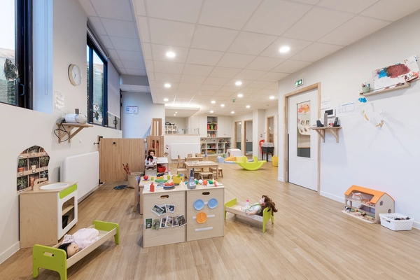 Au contact de la forêt domaniale, la crèche de Rambouillet cultive la curiosité naturelle des tout-petits dans un espace généreux, intérieur comme extérieur.