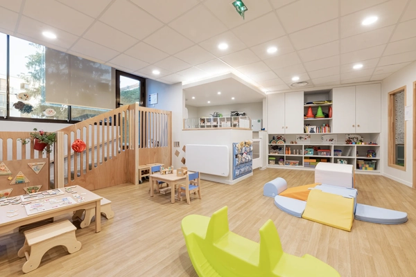 L'espace intérieur regorge de jeux d'imitation : cuisinière, machine à laver miniature, établi de bricolage… Ces équipements favorisent l'entrée dans le monde symbolique et stimulent l'imagination débordante des bambins. Des coins lecture confortables et des zones de construction complètent le panorama.